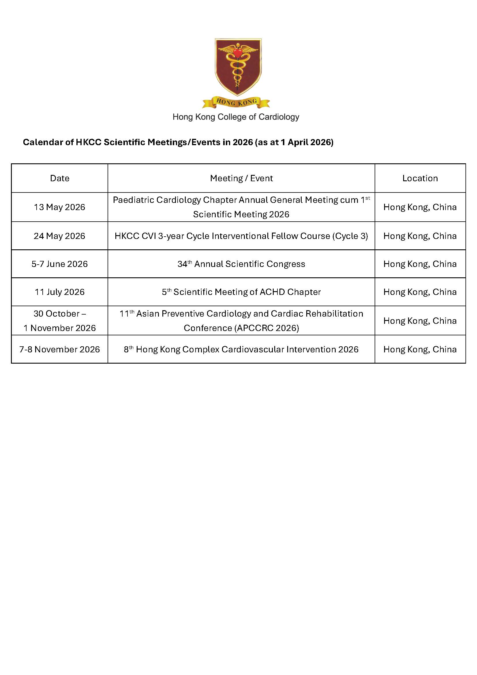HKCC CVI 3-year Cycle Interventional Fellow Course (Cycle 3) (24 May 2026)